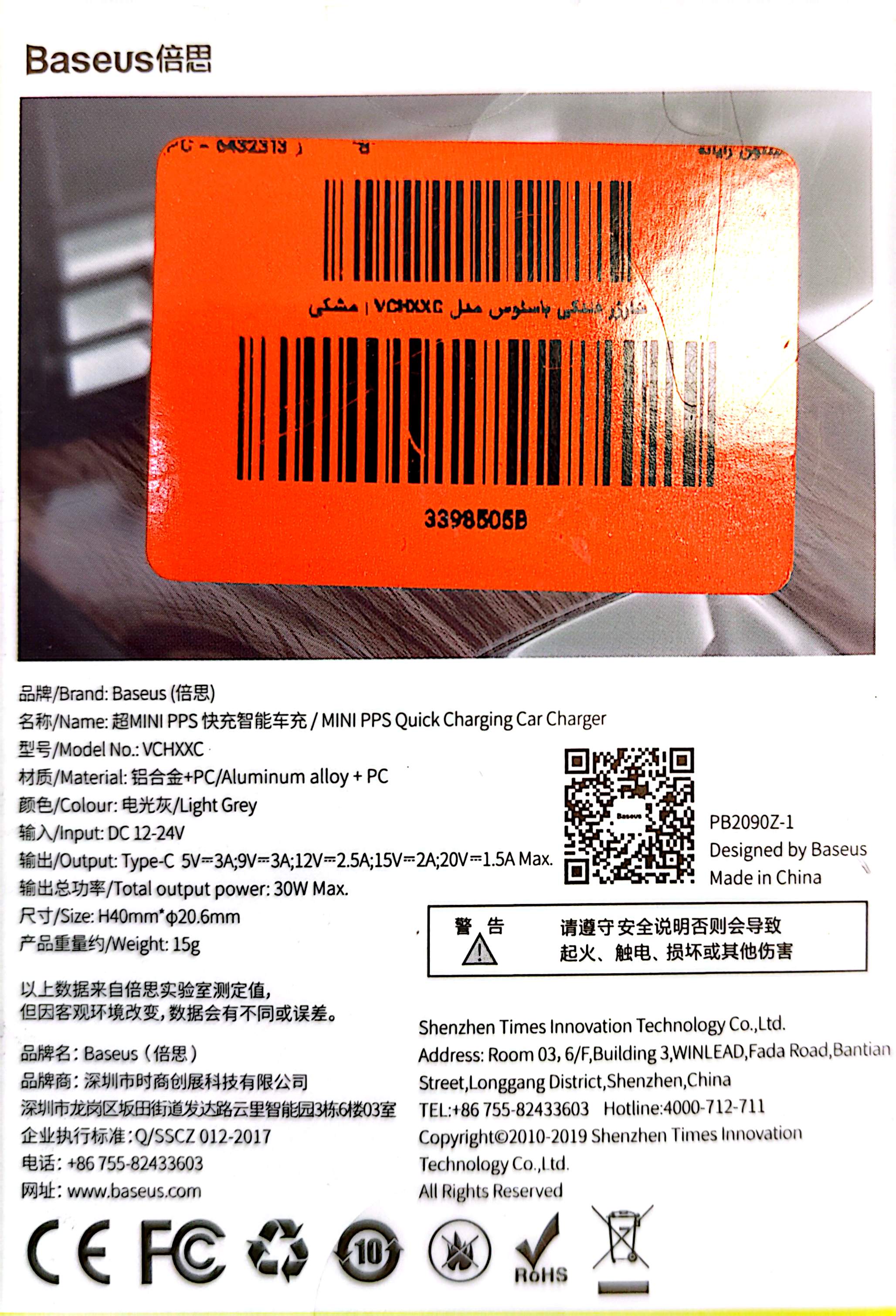 شارژر فندکی باسئوس مدل Tiny Star mini توان ۳۰ وات