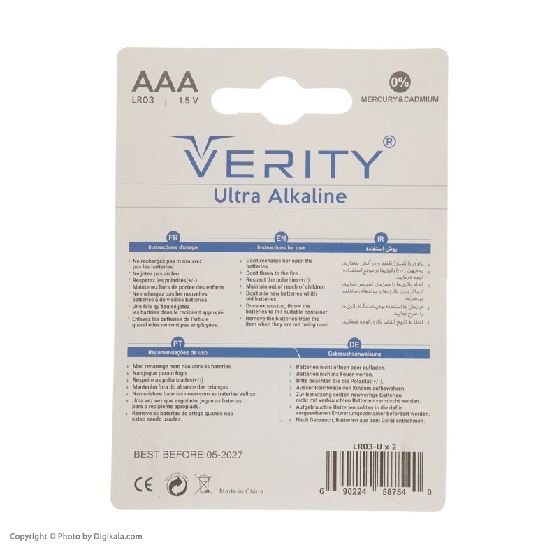 باتری نيم قلمی دو عددی وريتی مدل LR03 Ultra Alkaline